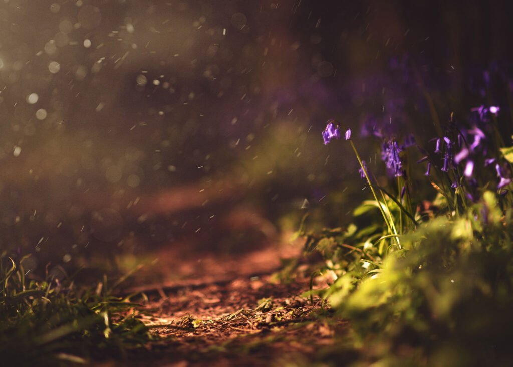 This image captures the tranquility of a pathway through Nottingham’s bluebell woods during the golden hour, providing an idyllic setting for a bluebell photoshoot.